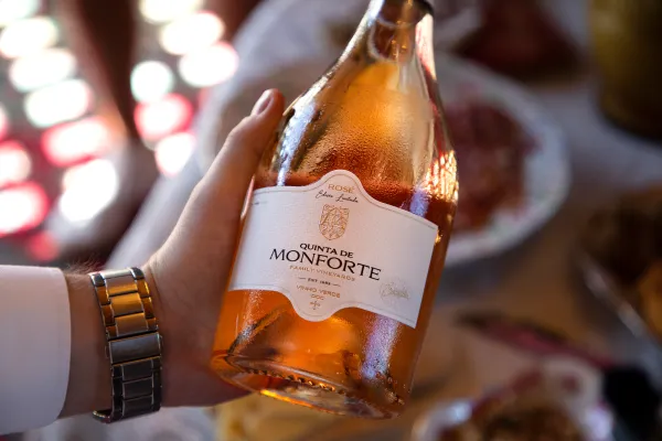 Rosé muito gastronómico, sério, mineral, seco e com fruta subtil. Produzido a partir de uvas da casta Vinhão, colhidas precocemente, logo no início da vindima. As uvas seguiram para a prensa, engaço incluído e intervenção mínima, sem aperto. Deste modo, obtém-se do retinto da casta Vinhão o rosado suave que personaliza o vinho.